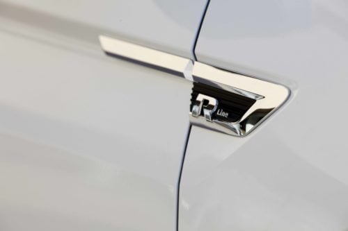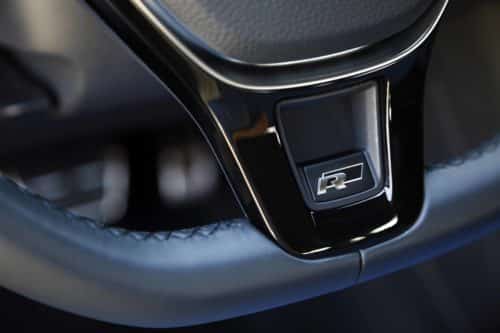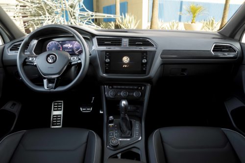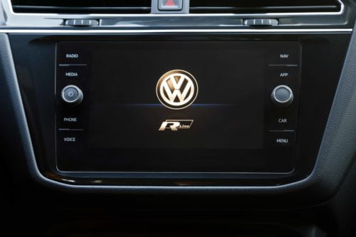 On the inside of the Tiguan, an R-Line welcome logo appears on the screen during startup. Of course, it wouldn’t be right not to have the logo on the steering wheel either. The headliner comes in black and the pedals get a sporty look too with some stainless steel covers. Stainless steel door sill plates with R-Line logo are also included.